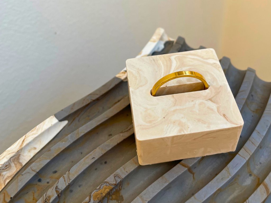 Jesmonite je materiál známý svou odolností a sametovým povrchem, který působí tepleji než beton či kámen. Díky tomu se výborně hodí do interiéru – na odkládání šperků, svíček, klíčů nebo drobných dekorací.